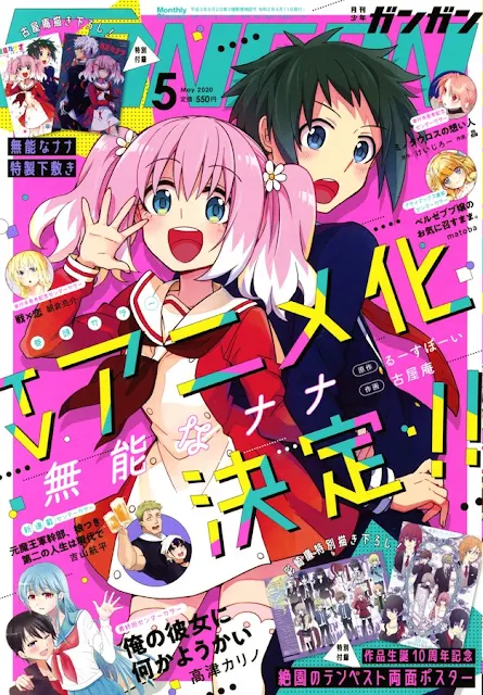 La portada de la más reciente edición de la revista Shounen Gangan anuncia que el manga Munou na Nana (Nana sin talento), original de Loose Boy (autor) y Iori Furuya (dibujo) será adaptado al anime.